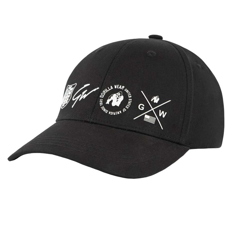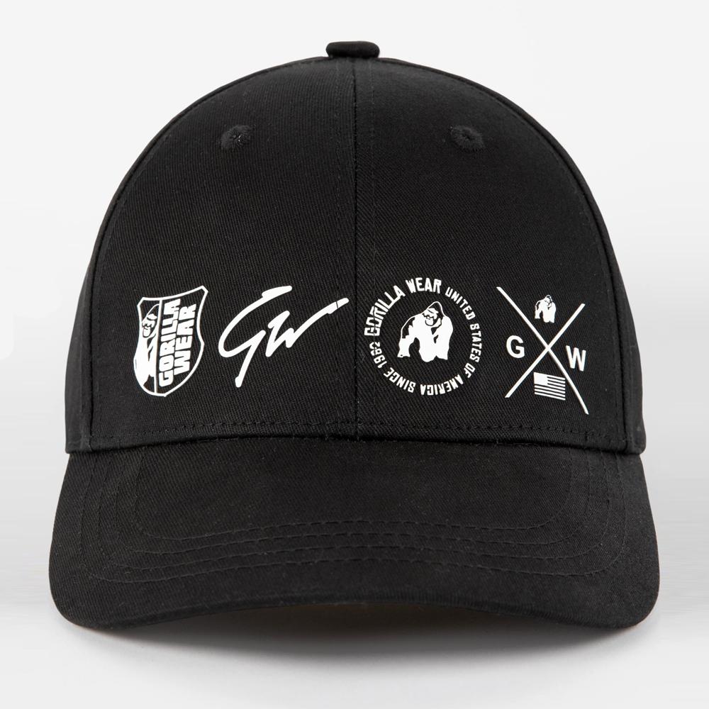 Бейсболка с изогнутым козырьком и регулируемой застежкой на задней части.