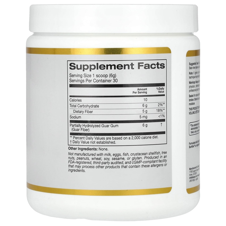 Пребиотическая клетчатка от California Gold Nutrition содержит клетчатку из гуаровой камеди Sunfiber® в порошке с нейтральным вкусом, которую можно легко добавить в любой напиток.