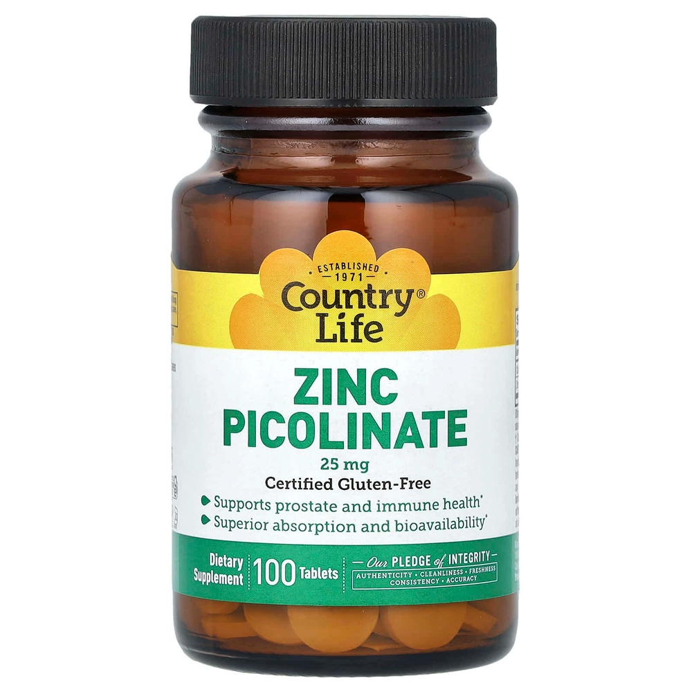 Цинк необходимо употреблять ежедневно, поскольку он не накапливается в организме. Цинк важен для укрепления иммунитета и здоровья простаты. В ходе клинических испытаний было обнаружено, что пиколинат цинка обладает лучшей усвояемостью в организме, чем цитрат и глюконат цинка.