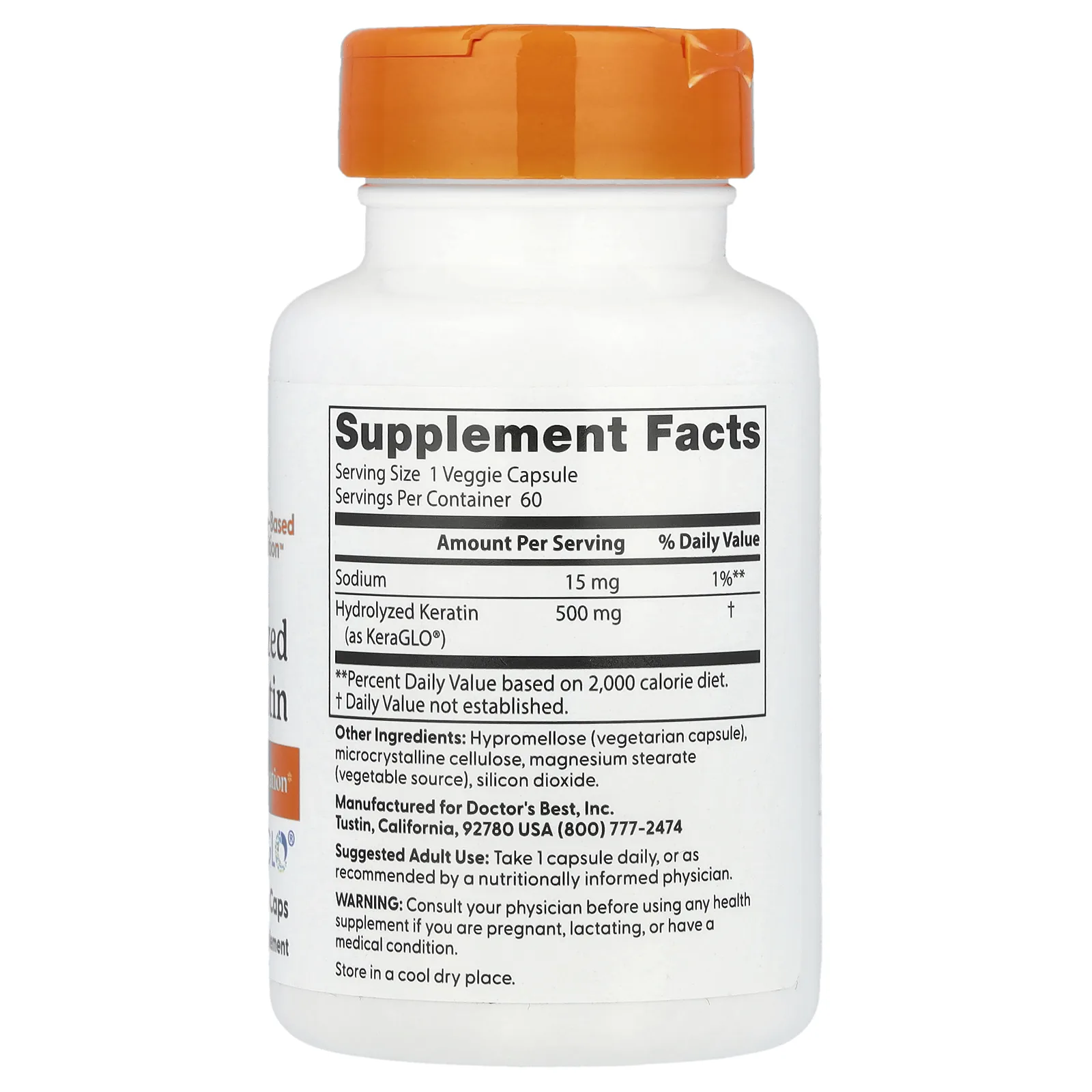 В Doctor’s Best мы заботимся о внутренней красоте. Наша формула представляет собой гидролизованную форму кератина, которая обеспечивает питание и поддерживает жизненную силу волос. Благодаря передовым научным исследованиям кератин является многообещающим средством для поддержания красоты изнутри.