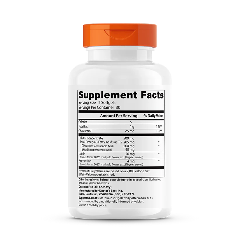 В компании Doctor’s Best мы считаем, что глаза дают ценную информацию об общем состоянии здоровья. Именно поэтому в состав наших специальных средств для улучшения зрения входят такие витамины для глаз, как лютеин и зеаксантин, которые, как известно, поддерживают здоровье макулы. В сочетании с омега-3 жирными кислотами эта комплексная смесь предназначена для поддержания здоровья и жизнеспособности глаз, обеспечивая целостный подход к улучшению зрения.