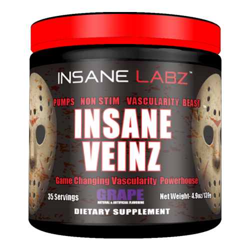 Insane VeinzНевероятная новинка Insane Labz Insane Veinz – это мощная пампилка на основе Агматина. Расширяет сосуды и ускоряет кровоток. Эффект держится ещё несколько часов после тренировки! Продлевает время тренинга, увеличивает количество подходов и повторений. Не содержит стимуляторов, но может сочетаться с любым из них!