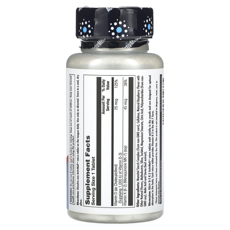 Микротаблетки D-3 и K-2 ActivMelt™ от KAL® быстро тают во рту и хорошо усваиваются в организме. Каждая микротаблетка содержит витамин K2 в форме MK-7