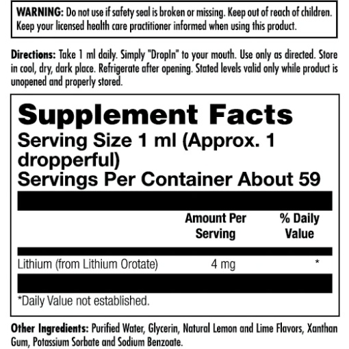 Быстродействующие жидкие капли содержат легкоусваиваемую хелатную форму минерала – оротат лития, предназначенную для поддержания здоровой умственной деятельности, сбалансированного настроения и хорошего самочувствия.