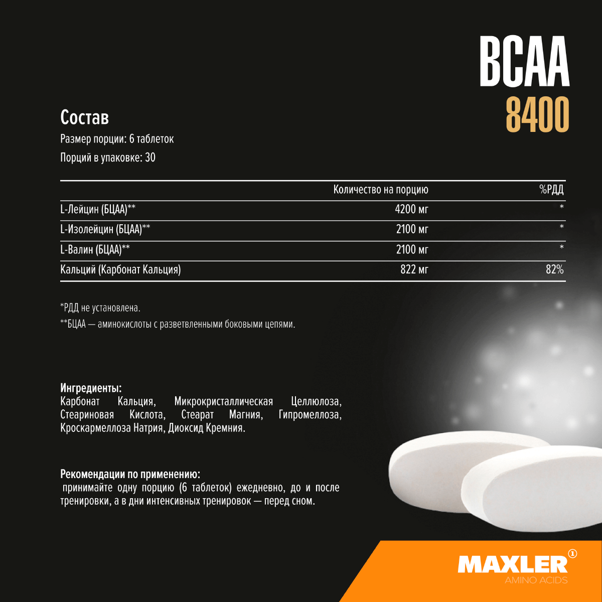 Maxler BCAA 8400 представляет собой набор из трех незаменимых аминокислот с разветвленной цепью: L-лейцин, L-валин и L-изолейцин в классическом соотношении 2: 1: 1. Являясь важным строительным материалом для мышц, BCAA усиливает синтез мышечного белка для ускорения роста мышц и поддержания мышечной массы. Они также уменьшают мышечную болезненность и усталость от интенсивных тренировок.
