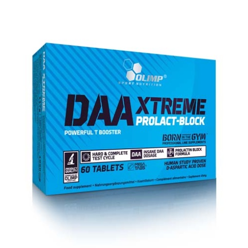 Одной из добавок, благотворно влияющей на внутренний анаболический и гормональный фоны, является DAA Xtreme Prolact Block от Olimp – препарат на основе D–аспарагиновой кислоты, а также витаминов B и E и цинка.