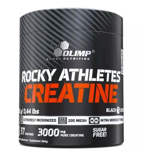 Olimp Rocky Athletes Creatine – чистый креатин моногидрат в порошке с магнием и витаминов B6 и предназначен для физически активных людей и спортсменов.