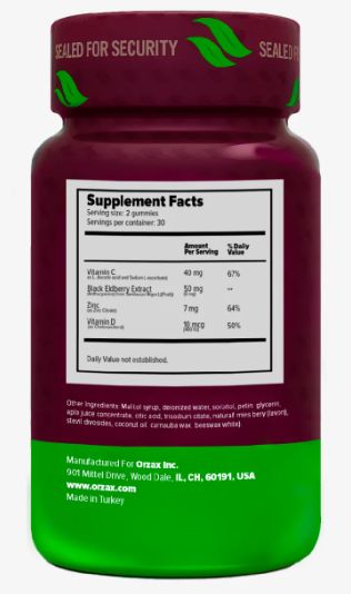 ORZAX Elderberry Immune Gummies – это вкусный и удобный способ поддержать иммунитет. Содержат витамины и микроэлементы, необходимые для нормальной работы иммунной системы – экстракт бузины, витамин С, витамин D3 и цинк. Мармеладки имеют приятный фруктовый вкус, что делает профилактику простудных заболеваний простой и удобной.