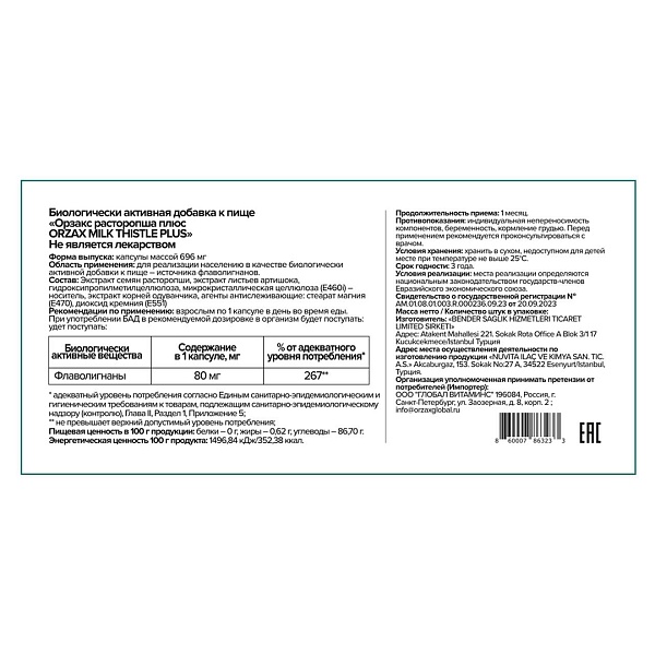 Milk Thistle Plus от компании Orzax — это высококачественный растительный продукт, разработанный для поддержки здоровья печени и улучшения общего состояния организма. Каждая капсула содержит натуральный экстракт расторопши, богатый семенами этого ценного растения. Расторопша известна своими мощными антиоксидантными свойствами, благодаря которым печень надежно защищена от повреждений.