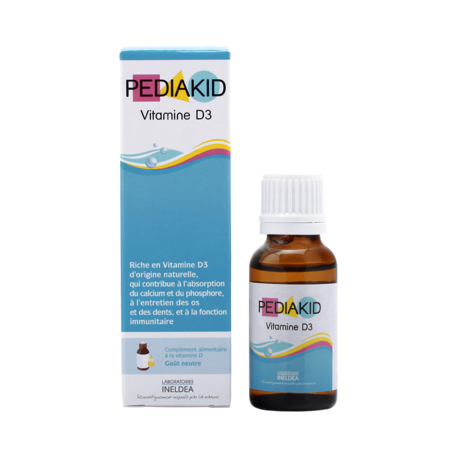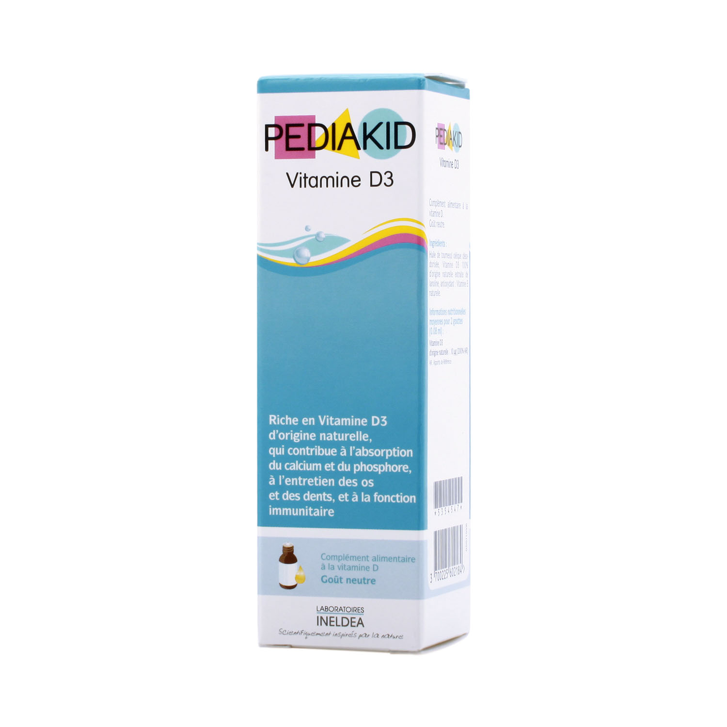 Способствует усвоению кальция и фосфора в костях и зубах. Витамин D, или «,солнечный витамин»,, помогает сохранить крепкие кости и зубы. Согласно исследованиям, у 80% населения наблюдается дефицит витамина D, поэтому крайне важно оптимизировать поступление питательных веществ. ,PEDIAKID®, Vitamine D3 ,природного происхождения специально разработан для обеспечения и оптимального усвоения кальция и фосфора, а также для укрепления естественных защитных сил.