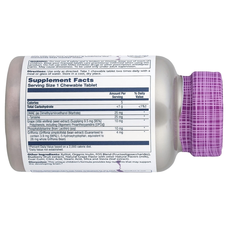Одним из ключевых ингредиентов Focus for Kids является диметиламиноэтанол битартрат, также известный как DMAE. DMAE — это органическое соединение, которое часто встречается в жирной рыбе и может поддерживать здоровье мозга. В сочетании с естественным фосфолипидом под названием фосфатидилсерин эти соединения могут поддерживать память, способность к обучению и здоровье нервной системы в нескольких областях мозга.