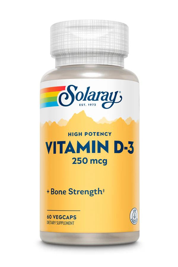 Высокоэффективный витамин D-3 Solaray содержит ту же форму витамина D, которую ваш организм вырабатывает на солнце, обеспечивая сверхвысокую дозу сияющего здоровья. Наш биодоступный витамин D-3 помогает поддерживать усвоение кальция, что, в свою очередь, означает поддержку крепких костей, здоровой сердечно-сосудистой системы, иммунитета и функции печени, здоровья кожи и многого другого!
