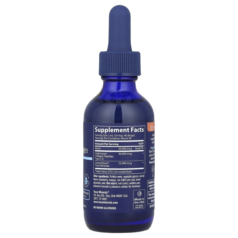 Общая поддержка организма: Комбинация биотина, коллагена и ионных микроэлементов предоставляет комплексный подход к поддержанию здоровья волос, кожи и ногтей, а также поддерживает общий минеральный баланс в организме.