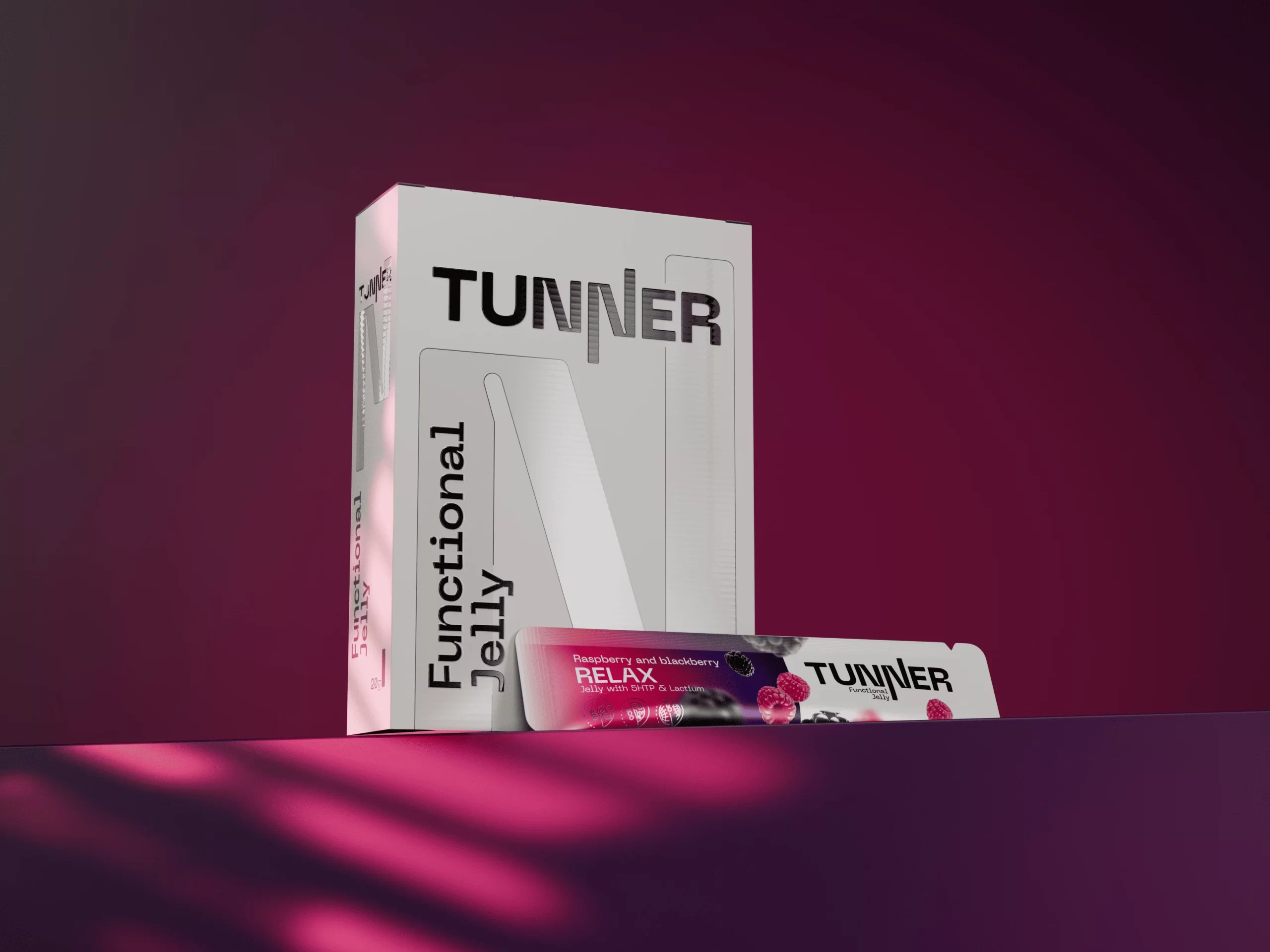 Функциональное желе RELAX со вкусом «Малина и ежевика», TM TUNNER. Желе на основе натурального сока малины с 5-НТР (5-гидрокситриптофан) и гидролизатом молочного белка LACTIUM. Благотворно влияет на защиту нервной системы, способствует снятию тревоги, расслаблению и улучшению качества сна.