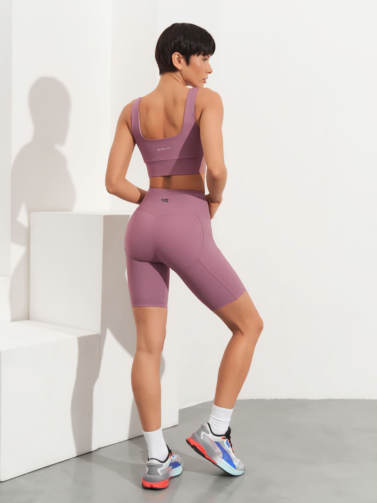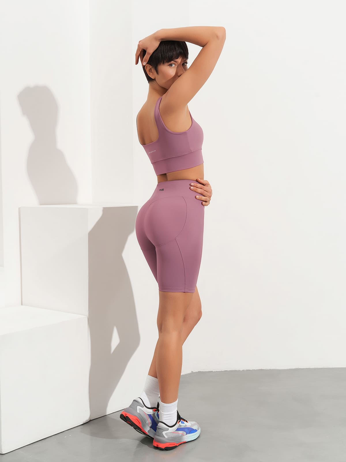 Велосипедки для фитнеса с высокой посадкой. Моделирующие строчки по линии ягодиц и бедер хорошо подчеркивают фигуру. Корсажный пояс имеет эффект утяжки. Для дополнительного комфорта по время тренировок в велосипедках имеется ластовица.