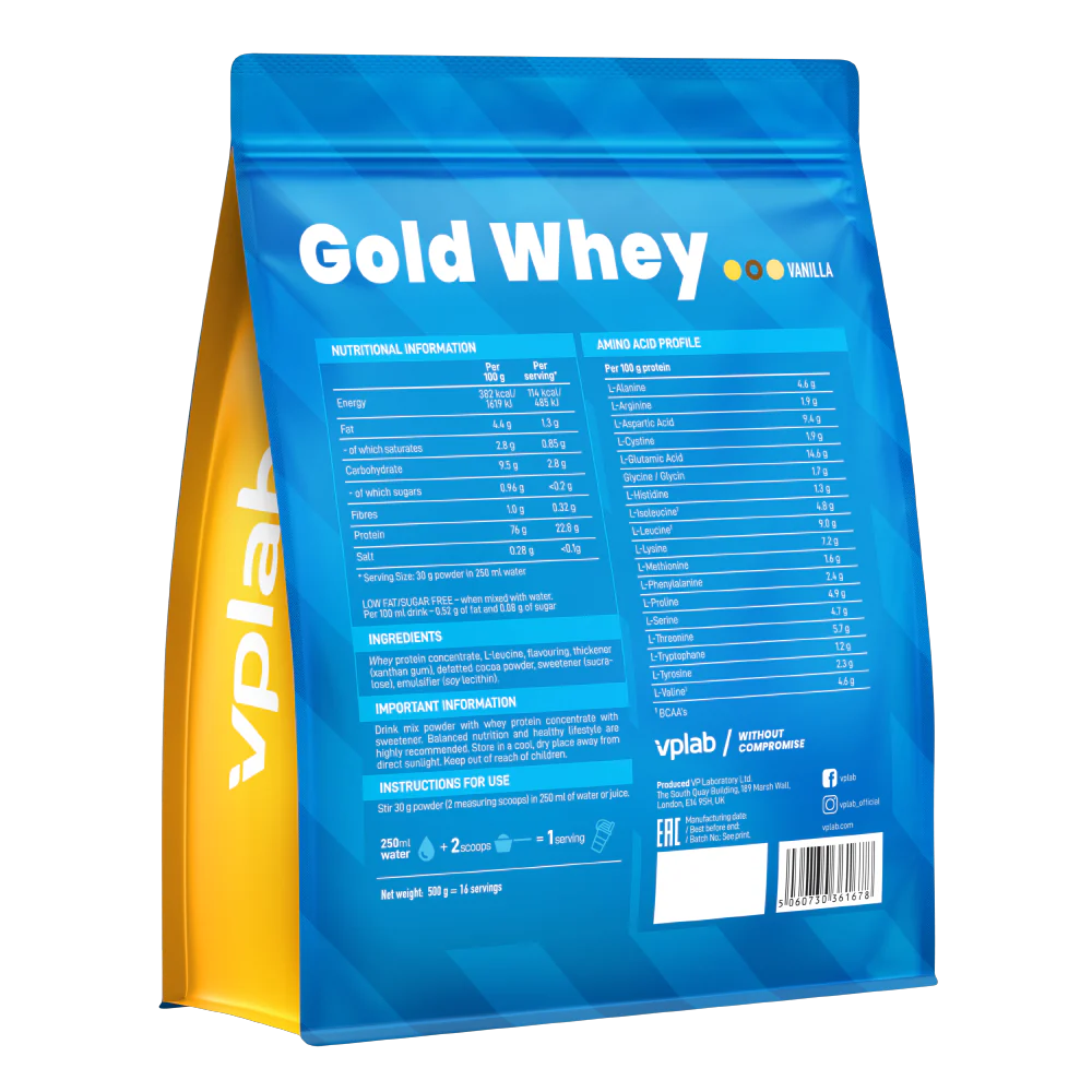 Сывороточный протеин и L-лейцин VPLAB Gold Whey – концентрат сывороточного белка с высокой скоростью усвоения.